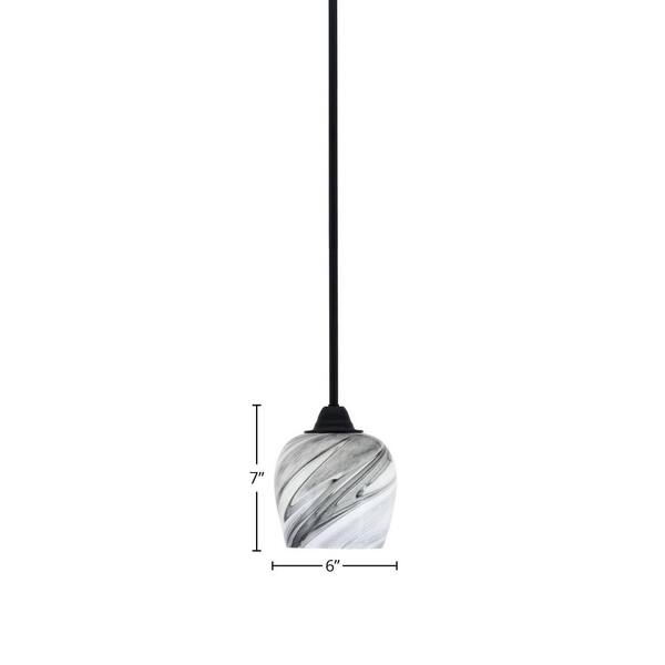 Madison 100-Watt 1-Light Matte Black Shaded Pendant Light with 6 in. Onyx Swirl Shade, No bulb Included