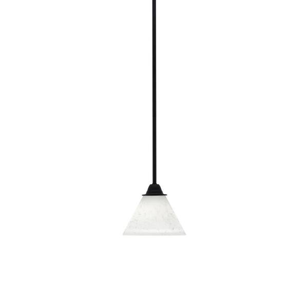 Madison 100-Watt 1-Light Matte Black Shaded Pendant Light with 7" White Muslin Shade, No bulb included
