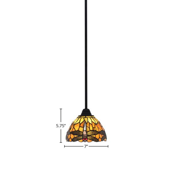 Madison 100-Watt 1-Light Matte Black Shaded Pendant Light with 7 in. Amber Dragonfly Art Glass Shade, No bulb Included
