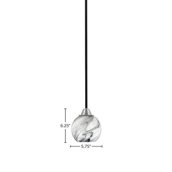 Madison 100-Watt 1-Light Matte Black and Nickel Shaded Pendant Light with 5.75 in. Onyx Swirl Shade, No Bulb Included