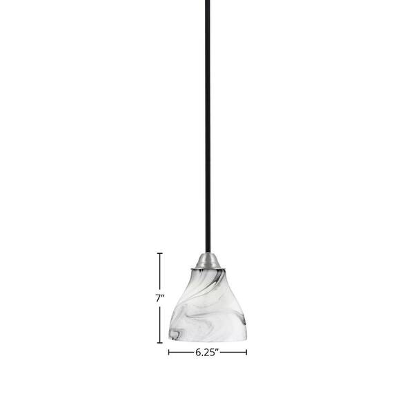 Madison 100-Watt 1-Light Matte Black and Nickel Shaded Pendant Light with 6.25 in. Onyx Swirl Shade, No Bulb Included