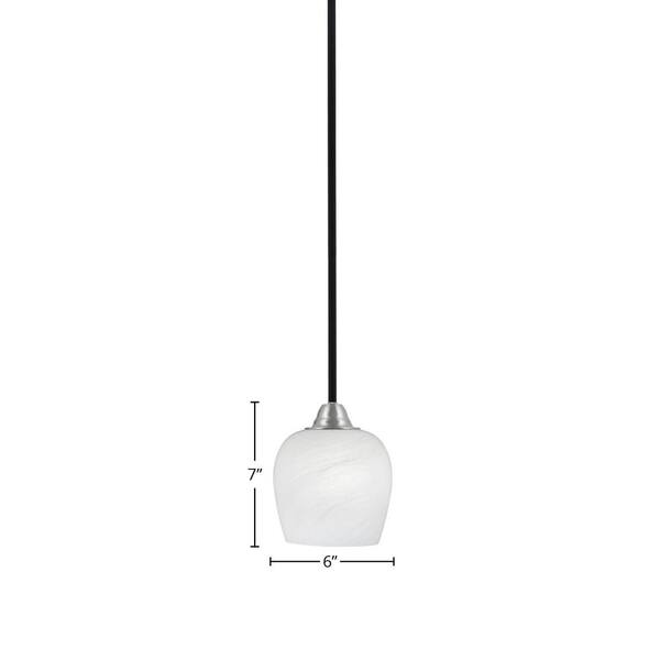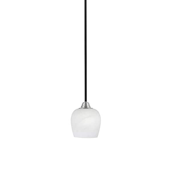 Madison 100-Watt 1-Light Matte Black and Nickel Shaded Pendant Light with 6 in. White Marble Shade, No Bulb Included