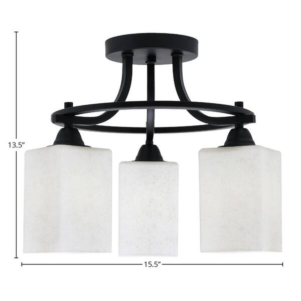 Madison 15.5 in. 3-Light Matte Black Semi-Flush Mount with Square White Muslin Glass Shade