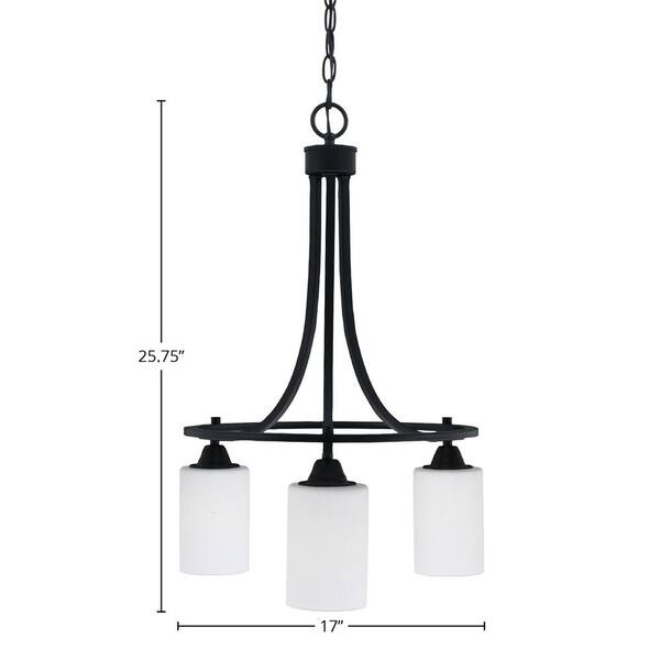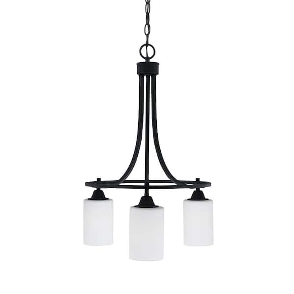 Madison 3-Light Matte Black Round Chandelier with 4 in. White Muslin Glass Shades, No bulbs included