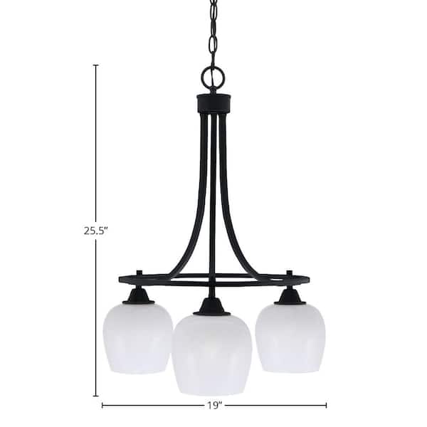 Madison 3-Light Matte Black Round Chandelier with 6 in. White Marble Glass Shades, No bulbs included