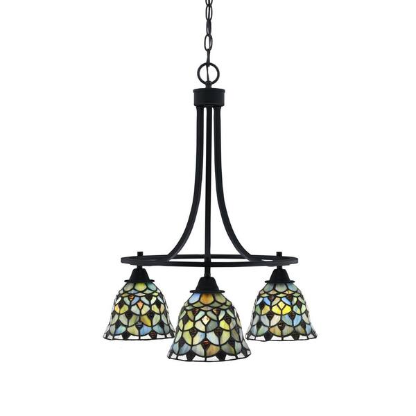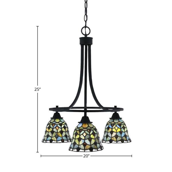 Madison 3-Light Matte Black Round Chandelier with 7 in. Crescent Art Glass Shades, No bulbs included