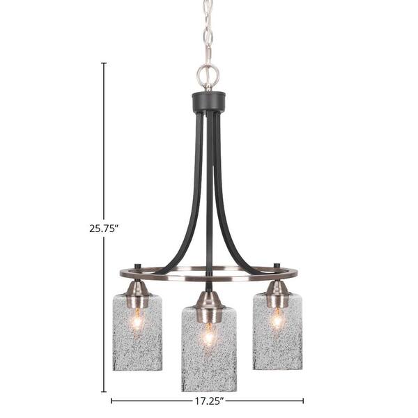 Madison 3-Light Matte Black and Brushed Nickel Round Chandelier with 4 in. Smoke Bubble Glass Shades, No bulbs included