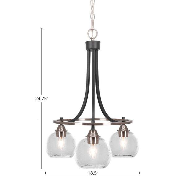 Madison 3-Light Matte Black and Brushed Nickel Round Chandelier with 5.75" Clear Bubble Glass Shades, No bulbs included