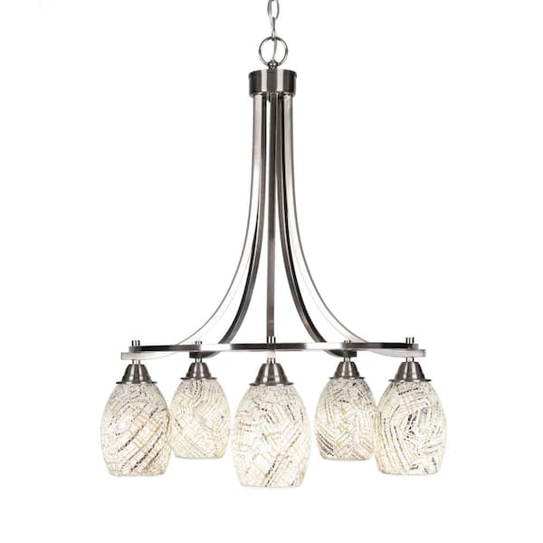 Madison 5-Light Brushed Nickel Round Chandelier with 5 in. Natural Fusion Glass Shades, No bulbs included