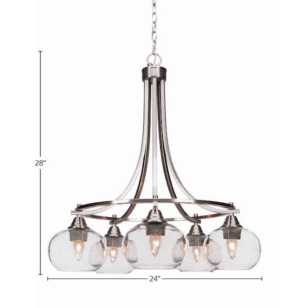 Madison 5-Light Brushed Nickel Round Chandelier with 7 in. Clear Bubble Glass Shades, No bulbs included