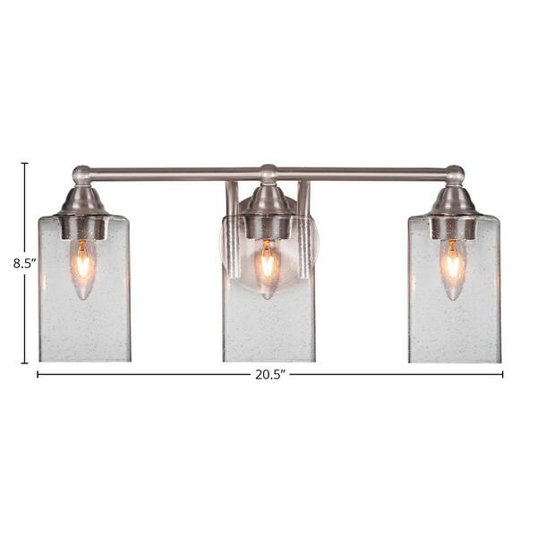 Madison 6.75 in. 3-Light Bath Bar, Brushed Nickel, Square Clear Bubble Glass Vanity Light