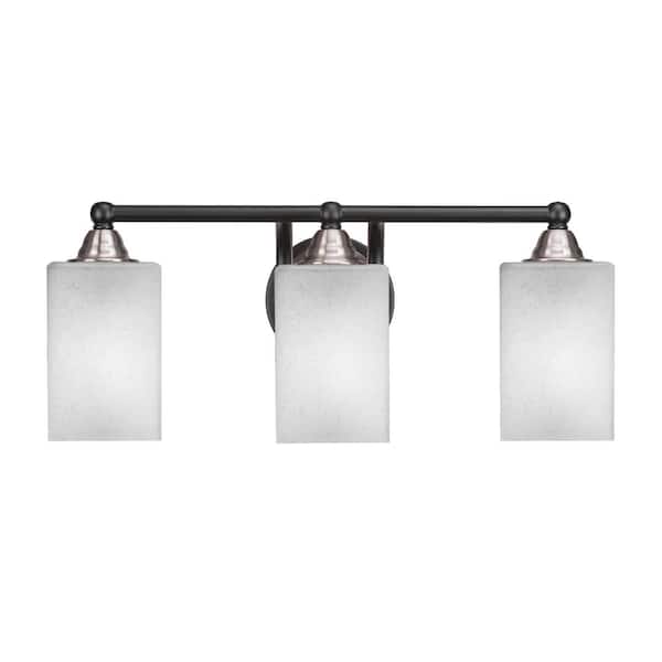 Madison 6.75 in. 3-Light Bath Bar, Matte Black and Brushed Nickel, Square White Muslin Glass Vanity Light