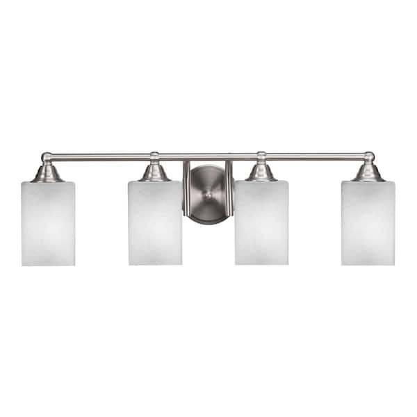 Madison 6.75 in. 4-Light Bath Bar, Brushed Nickel, Square White Muslin Glass Vanity Light