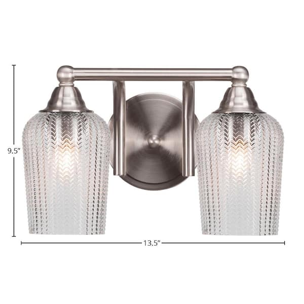 Madison 7.5 in. 2-Light Bath Bar, Brushed Nickel, Clear Textured Glass Vanity Light