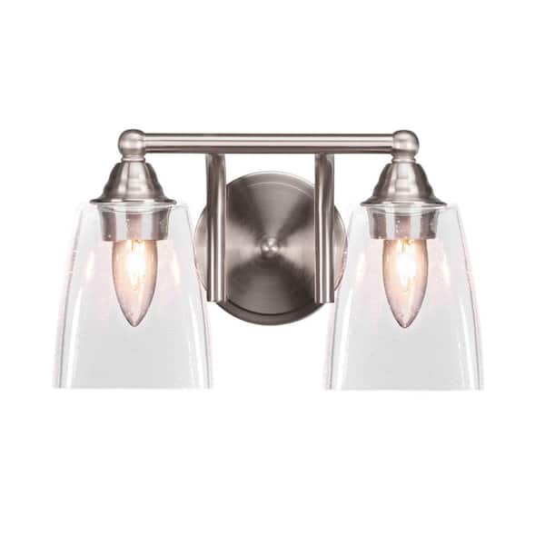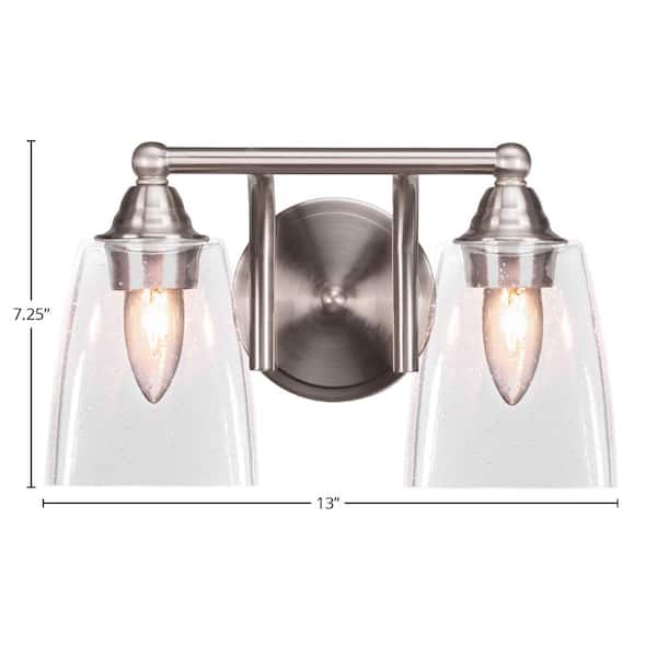 Madison 7 in. 2-Light Bath Bar, Brushed Nickel, Square Clear Bubble Glass Vanity Light