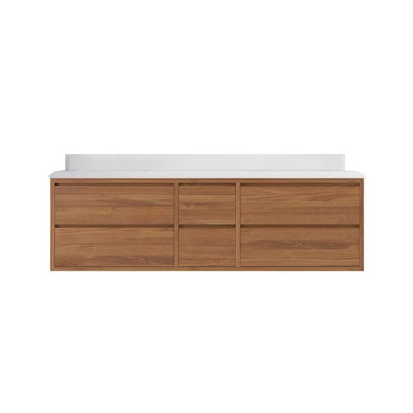 Madison Float 72 in. W x 22 in. D x 36 in. H Double Sink Bath Vanity in Dark Natural with 1.5" White Qt. Top