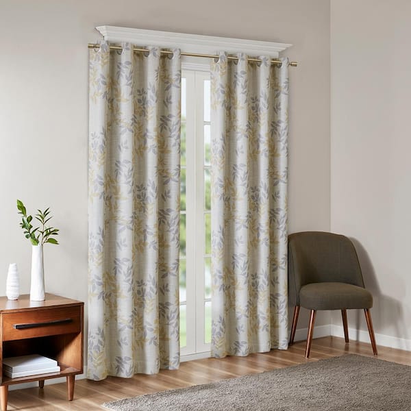 April Yellow Printed Botanical 50 in. W x 84 in. L Blackout Grommet Top Curtain