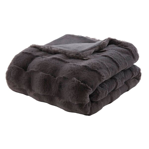 Camille Grey Faux Fur Throw Blanket