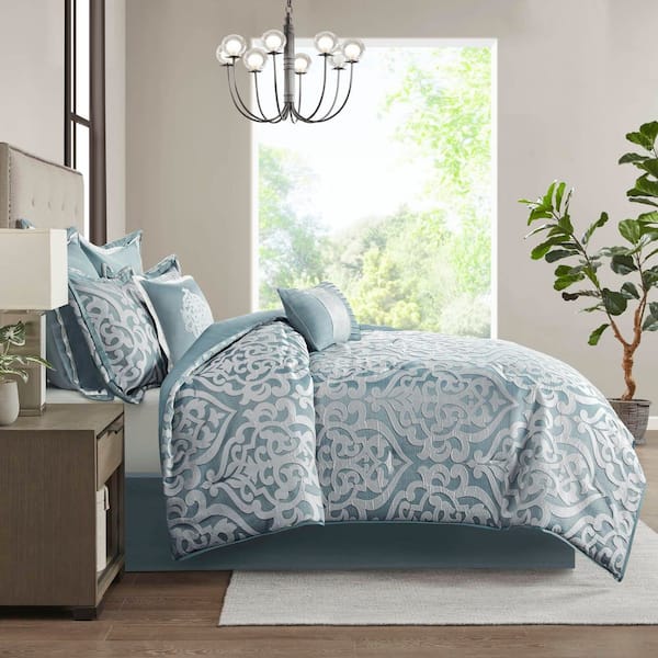 Dillon 8-Piece Aqua/Silver Polyester Queen Comforter Set