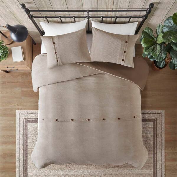 Lennox Tan Full/Queen 3-Piece Polyester Corduroy Duvet Cover Set