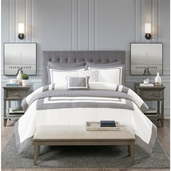 Lexington 8-Piece Grey Microfiber Full/Queen Comforter Set