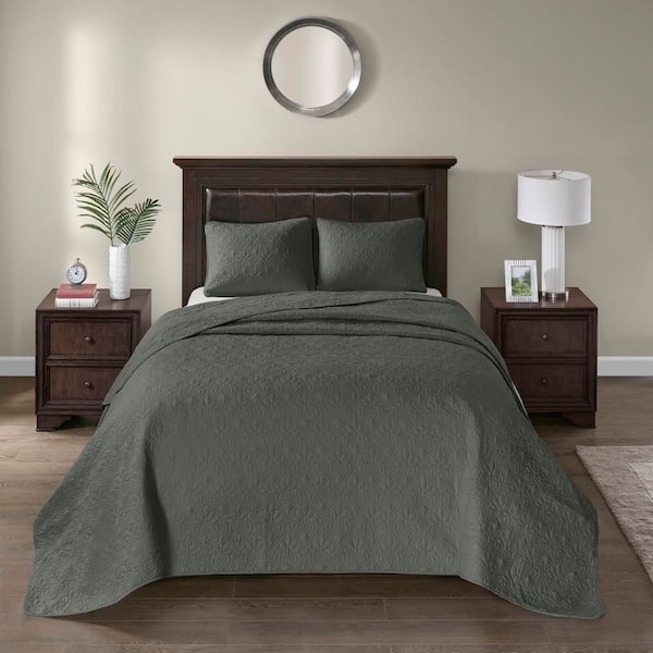 Mansfield Dark Grey Polyester Full Reversible Bedspread Set