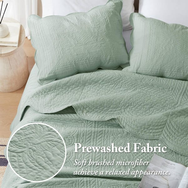 Marino Seafoam Microfiber King/Cal King Scalloped Edge Quilt Set