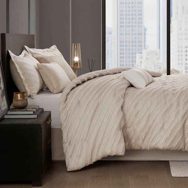 Reeve 7-Piece Beige Polyester Queen Comforter Set