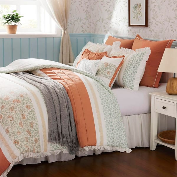 Vanessa 9-Piece Coral Cotton Queen Comforter Set