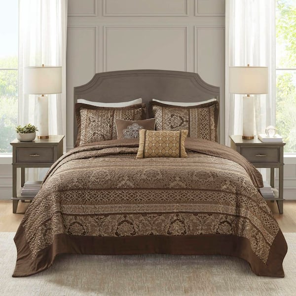 Venetian Brown/Gold Cotton King Reversible Jacquard Bedspread Set