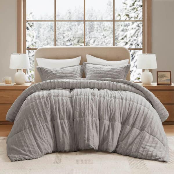 York Polyester Grey Faux Fur King/California King Comforter Set