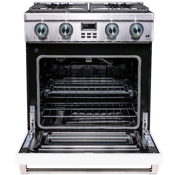 Pro-Style 30 in. 4-Burner Slide-in Gas Range with Convection in Stainless Steel with White Oven Door