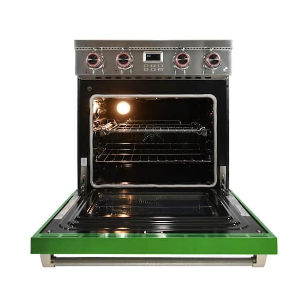 Pro-Style 30 in. 4-Element Slide-In Electric Range with Convection in Stainless Steel with Green Oven Door