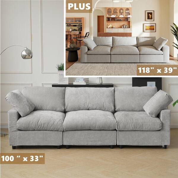 101 in. Square Arm Chenille Fabric 3-Piece Modular Free Combination Sectional Sofa in. Gray