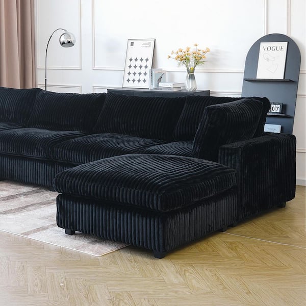 118 in. Square Arm Faux Rabbit Fur Velvet 4-Piece Free Combination Cloud Modular Sectional Sofa with Ottoman in Black