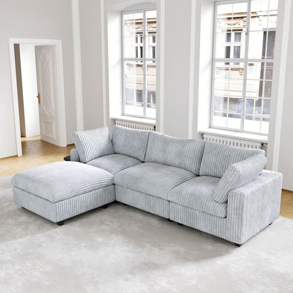118 in. Square Arm Soft Faux Rabbit Fur Velvet 4-Piece L-Shaped Modern Comfy Cloud Modular Sectional Sofa Couch in. Gray