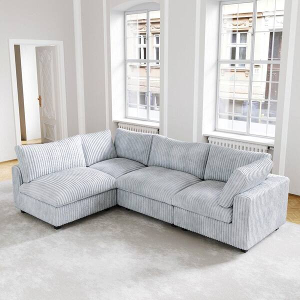 118 in. Square Arm Velvet Down Filled Modular Sofa Free Combination Lawson Cloud Couch with Detachable Covers in. Gray