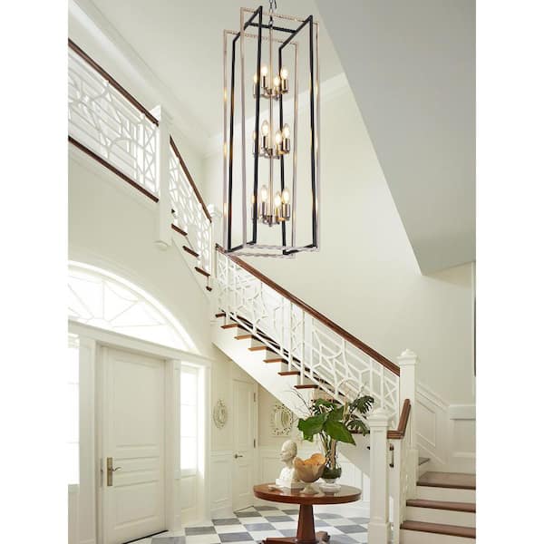 12 Light Modern Chandelier Semi Flush Black and Sliver Ceiling Light Fixture for Dining Room Hallway Entryway Bedroom