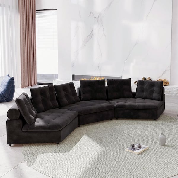 130 in. Square Arm Rectangle 3-Seater Frosted Velvet Free Modular Sectional Sofa in Gray