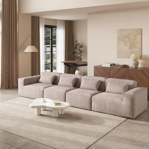 149 in. Square Arm Cloud Fleece Fabric 4-Seater Memory Foam Deep Seat Modular Sectional Sofa in. Brown