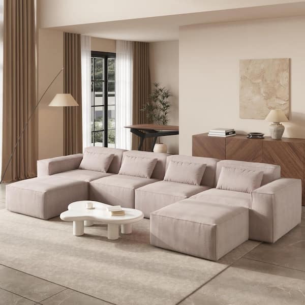 149 in. Square Arm Cloud Fleece Fabric Memory Foam U-shaped 4-Seater Modular Sectional Sofa with 2 Ottomans in. Brown