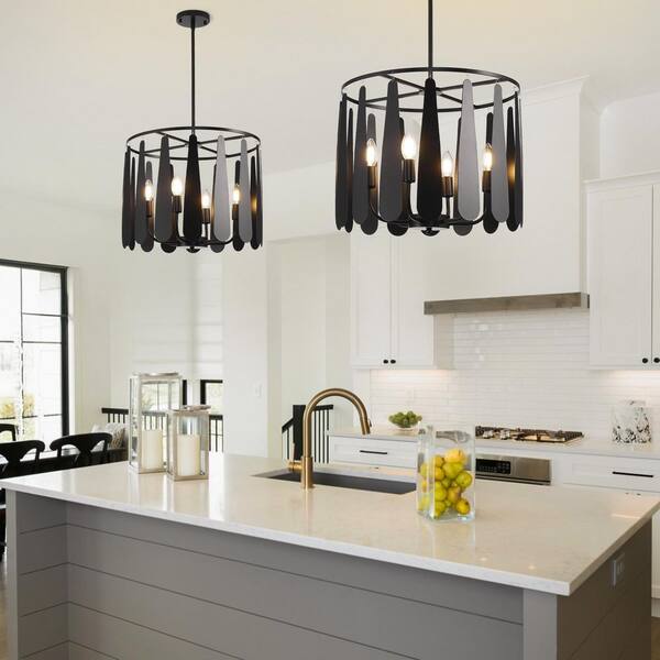 17.72 in. 6-Light Black Wind Chime Chandelier with E12 Bulb No Bulbs Included