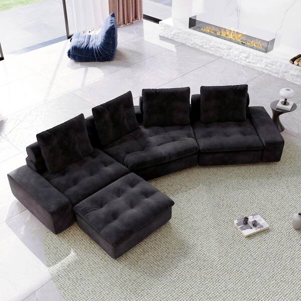 176.4 in. Square arm Rectangle 3-Seater Frosted Velvet Free Combination Modular Sectional Sofa with Ottoman in. Gray