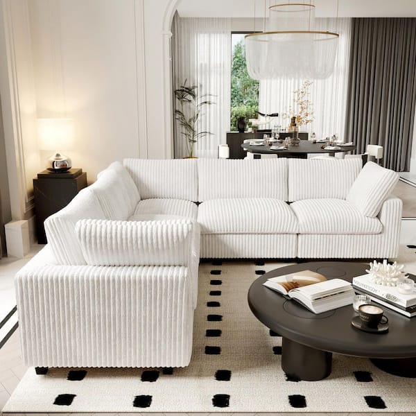 197 in. W Squre Arm Soft Faux Rabbit Fur Velvet Modular Sectional Sofa in. Beige