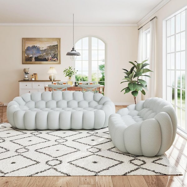 (2-Piece) Bubble Armless Couch, 98 in. Gray Mesh Fabric Armless Modular Sectional Sofa Living Room Set