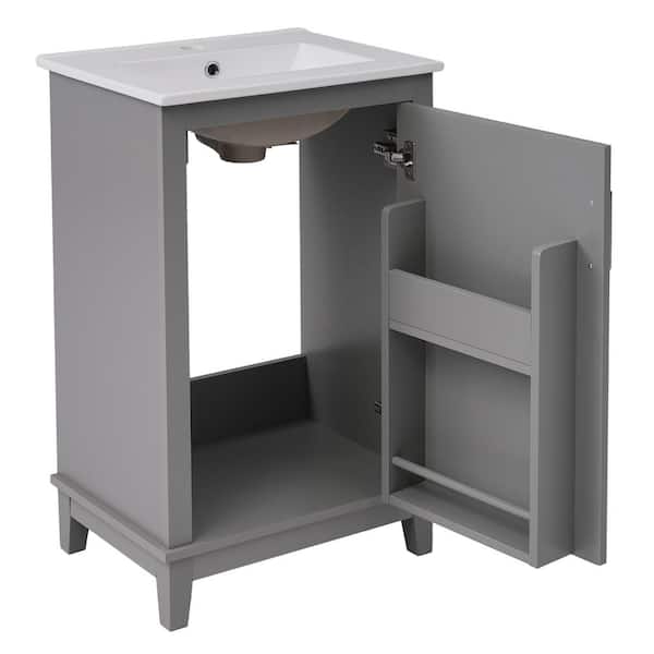 20 in. Modern Small Bathroom Vanity Cabinet with Ceramic Basin- 20 x 15.5 x 33.3 in., Ample Storage,1 Soft-Close Door