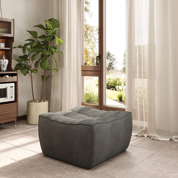 27.5 in. Armless Linen Modular Square Sofa Fireside Lazy Floor Sectional Sofa Ottoman for Living Room,Apartment in Black