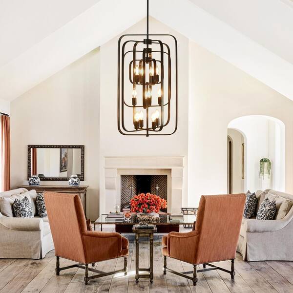 3-Tier 12-Light Modern Black Geometric Chandelier Light Fixture for Dining Room or Kitchen