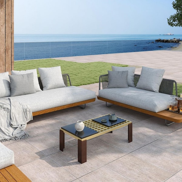 48 in. W Black and Gold Rectangle Stone Tabletop Coffee Table with Hollow Lattice Design