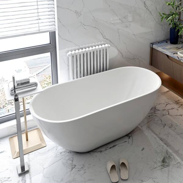 55 in. cUPC Certified Acrylic Freestanding Soaking Bathtub with Brushed Nickel Overflow and Drain, White